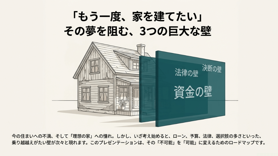 確かに、住宅ローン残債の処理、数千万円単位の資金調達、再建築不可の法的ハードル、そして仮住まいの手間など、乗り越えなければならない壁はいくつもあるでしょう。