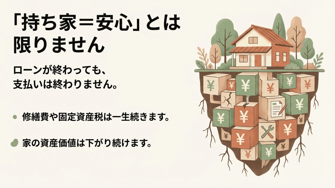 最近、私の周りでも「将来のことを考えて、あえて家を持たないほうが身軽でいいかも」という声を耳にすることが増えました。かつては家を持って一人前という風潮もありましたが、今は価値観が大きく変わっていますね。