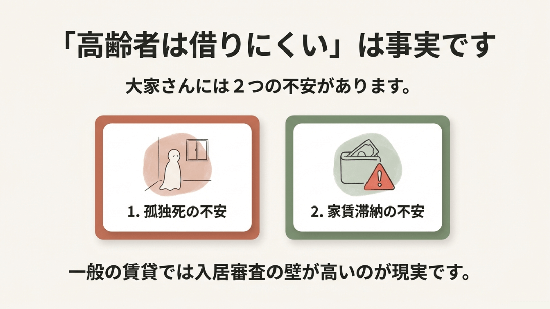 しかし、現実はそう甘くはありません。独身の高齢者が民間賃貸で部屋を探そうとすると、不動産会社やオーナーから露骨に敬遠されるという、厳しい壁にぶつかることが多々あります。