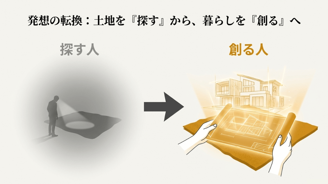膠着状態を打破するには、これまでとは違うアプローチが必要です。「条件に合う土地を探す」から「土地に合わせて理想の暮らしを作る」へと視点を変えてみましょう。