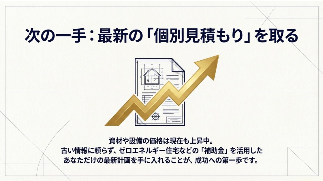 今まさに平屋を計画されている方は、2025年以前の古い坪単価データはすでに過去の遺物であると割り切らなければなりません。2026年現在のリアルな建築単価に基づいた最新の見積もり基準で判断することこそが、資金計画の破綻や予算ショートを防ぐ唯一の手段と言えるでしょう。