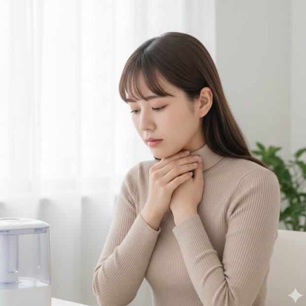 快適エアリーは常に家中の空気を循環させ、暖房時はエアコンと同様に室温を上げるため、相対湿度が極端に下がる傾向があります。宿泊体験者のレポートでは、「大型の加湿器をフル稼働させても湿度が30%台まで下がった」「朝、喉が痛くて目が覚めた」という声も少なくありません。