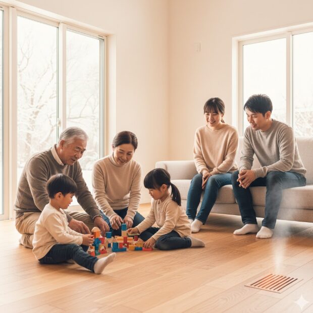 • 温度のバリアフリー体験: 玄関に入った瞬間から暖かく、廊下や脱衣所、トイレに至るまで温度差がほとんどありません。冬場の入浴事故(ヒートショック)の不安が解消される安心感は、高齢の家族がいる世帯には代えがたい価値です。