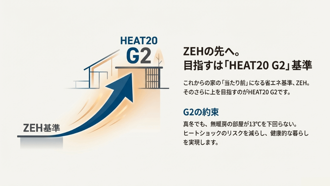 今後、住宅の省エネ性能は中古市場での査定にも大きく響いてくることが予想されます。ZEHレベルはもはや当たり前、その先の「HEAT20 G2/G3」レベルが資産価値の基準になる日も遠くないでしょう。