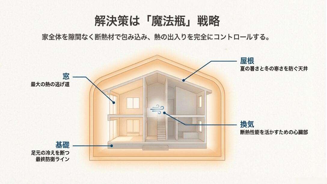 「家全体を魔法瓶のようにする」というイメージで、熱の逃げ道を徹底的に潰していくのが積水ハウス流のグレードアップ術と言えるでしょう。